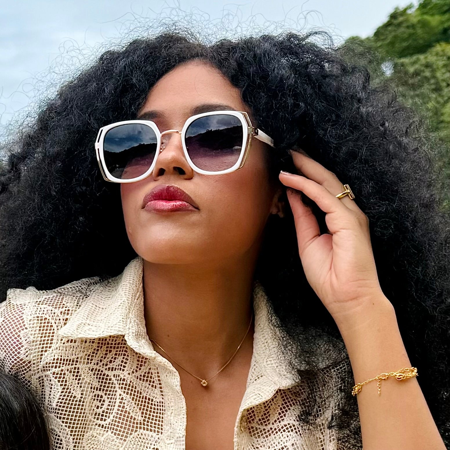O modelo Copacabana trás elegância para quem o usar. A cor branca da armação destaca-se pela sua modernidade e versatilidade, tornando-o ideal para diferentes ocasiões. Os detalhes em metal dourado adornam a parte das lentes, criando um efeito visual marcante e luxuoso. Em TR90, um material leve e resistente, confere conforto e durabilidade.